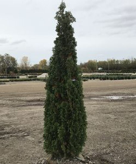 Arborvitae, Degroots Spire 5' B&B Please log in to see price or purchase this item Quantity discounts available QuantityPrice SKU: 252658-5A Details Compact, neat, narrow arborvitae with elegant deep green twisted foliage. Slow-growing evergreen that requires little trimming. Details Back DetailsCompact, neat, narrow arborvitae with elegant deep green twisted foliage. Slow-growing evergreen that requires little trimming.