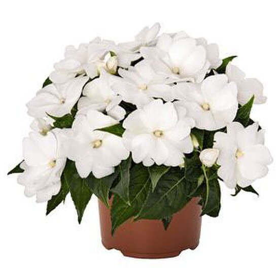 Impatiens, New Guinea Magnum White 4.33" Container Please log in to see price or purchase this item Quantity discounts available QuantityPrice SKU: 254076 Details Features bold round flowers at the ends of the stems from mid spring to early fall. Bred for large blooms and heavy flower set. Its pointy leaves rem... Details Back DetailsFeatures bold round flowers at the ends of the stems from mid spring to early fall. Bred for large blooms and heavy flower set. Its pointy leaves remain dark green in color throughout the season. The fruit is not ornamentally significant.